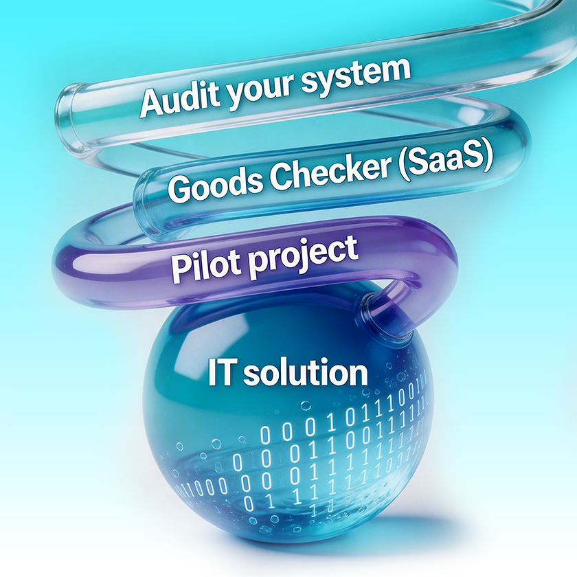 Step 2. Choose a solution with simple integration. Goods Checker uses REST API for corporate system integration, allowing pilot project launch in 2-3 weeks. The SaaS model enables selecting necessary modules and features for specific business tasks without paying for all functionality upfront.